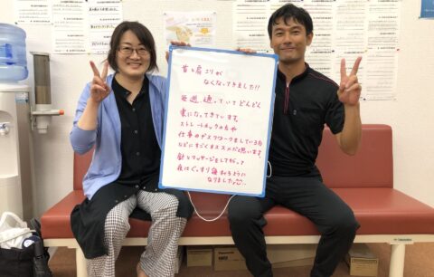 職業名 サンプル名前 ショー当日の足の痛み!何とか踊れるように。 ダンスのリハーサルで痛めた足がショー当日に悪化して困っていました。テーピングをしていただきなんとか本番をのり切ることができました。 その後も、お家でできるトレーニングを教えていただきめきめき回復!感謝です。 導入事例 腰の痛み・体の節々の痛みが改善! 職業名 サンプル名前 丁寧なカウンセリング・施術で、腰痛・頭痛が改善! 職業名 サンプル名前 首こり、肩こりがなくなってきました!! 職業名 サンプル名前